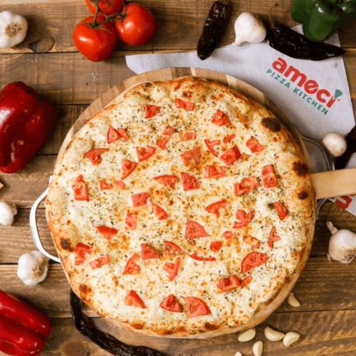 Mozzarella, ricotta cheese, fresh tomatoes, garlic, & oregano